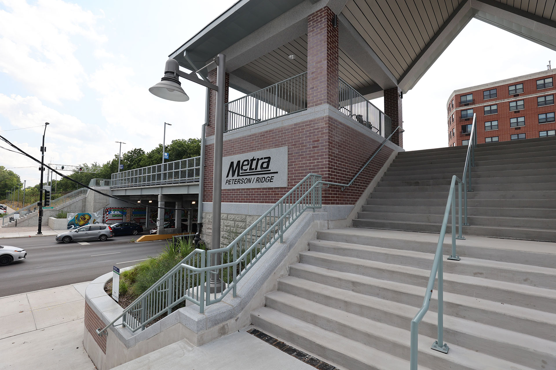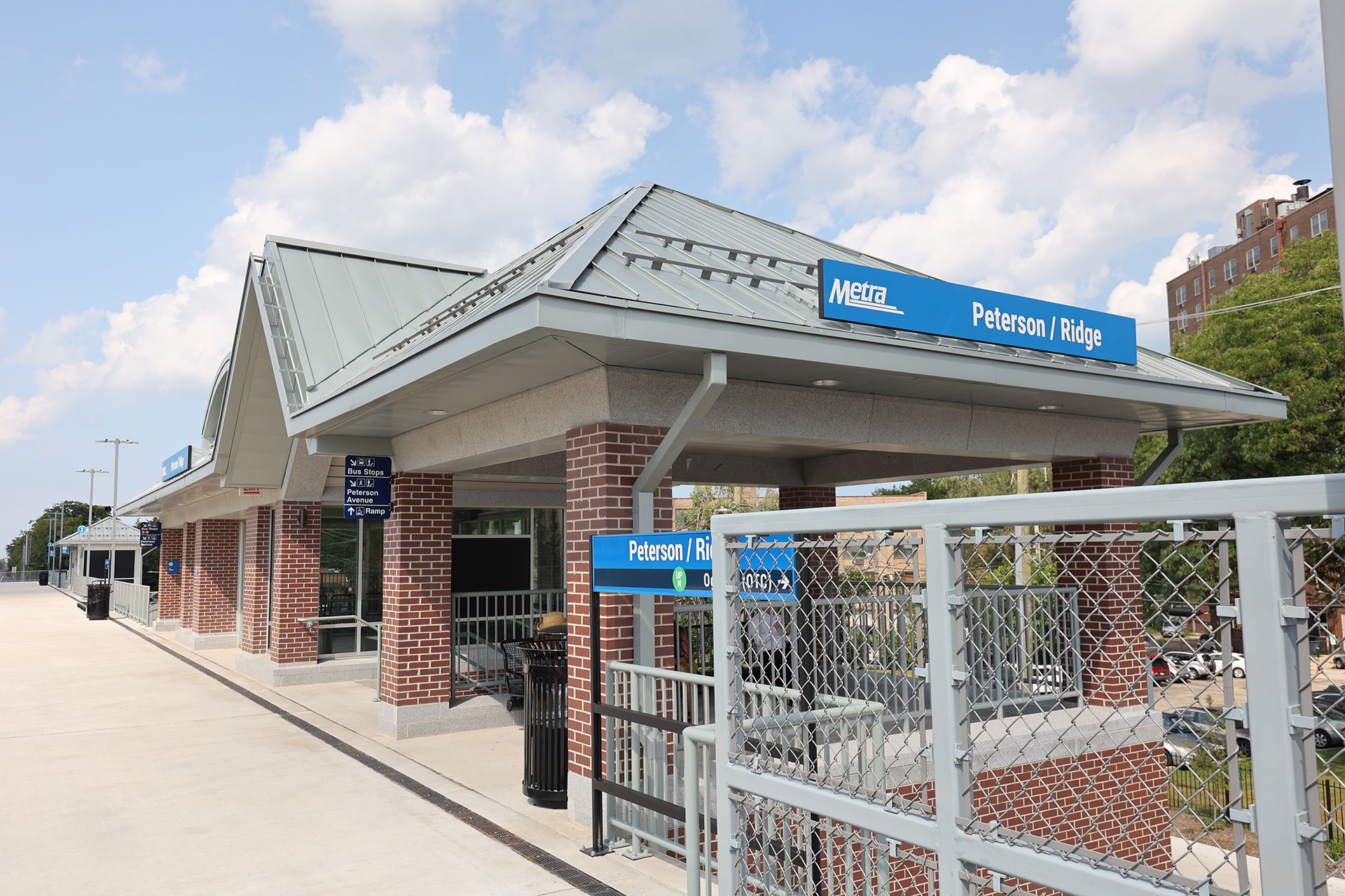 The new Warming House at the Metra Peterson Ridge Station in Chicago showcases brick veneer, limestone coping, and a granite base, complemented by a hanging granite soffit system throughout. Project Foreman: Chris Plewa.