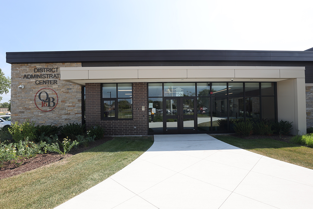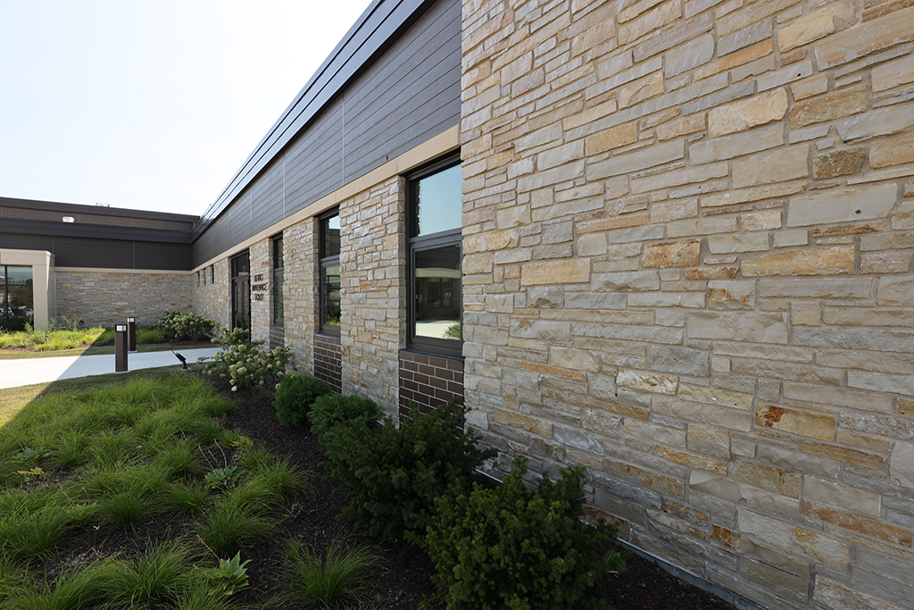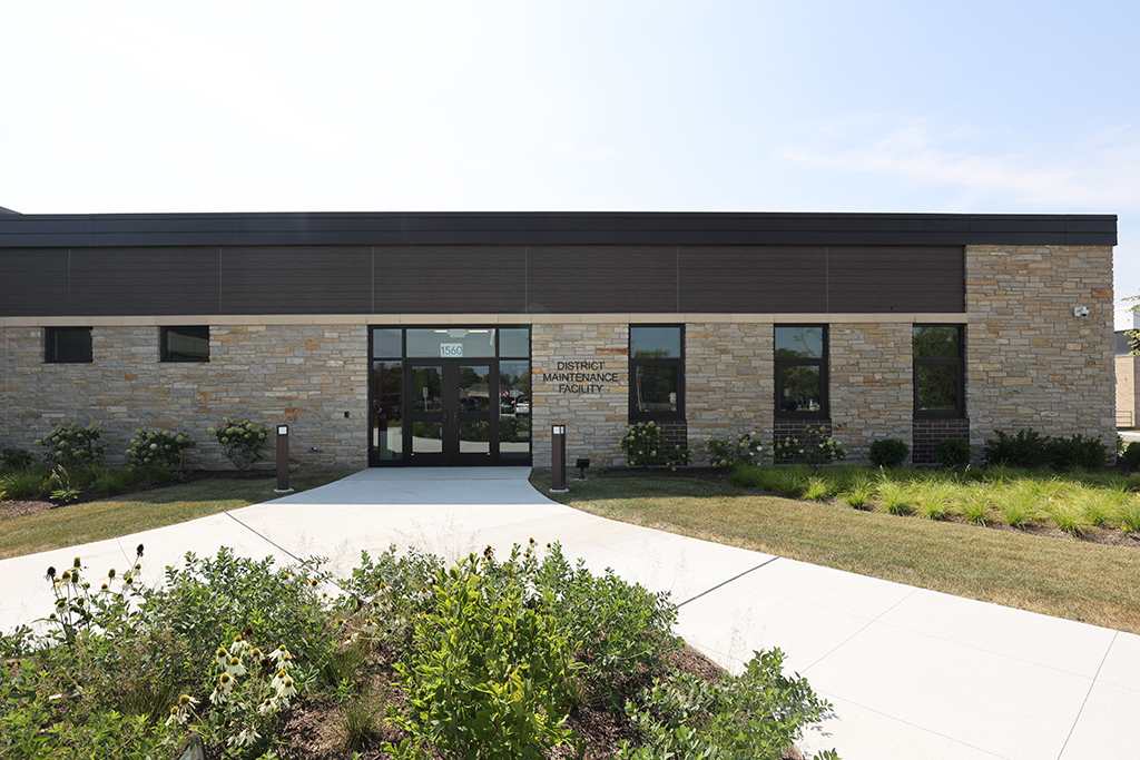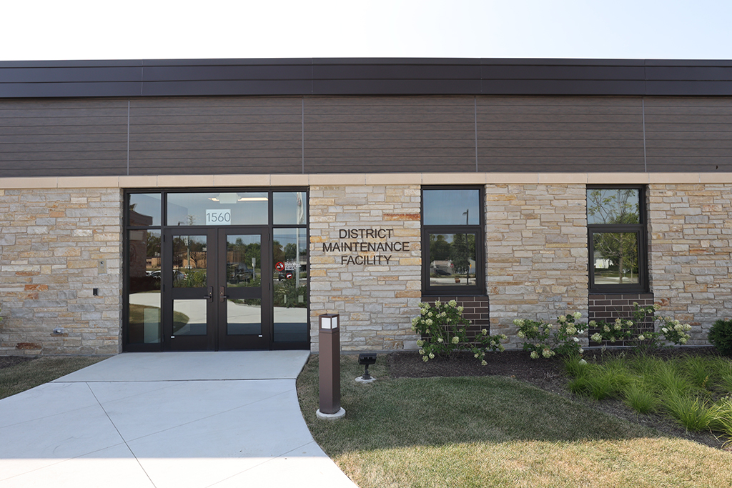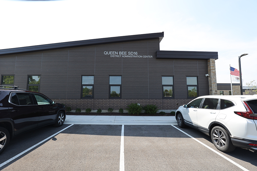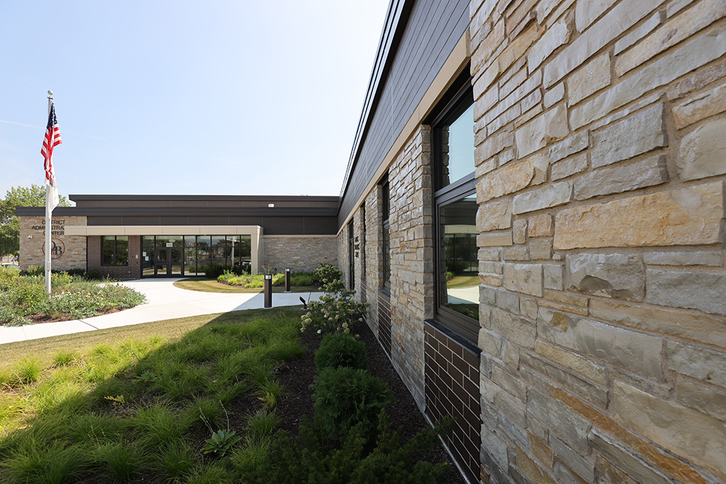 This new Administration and Maintenance building for School District 16 Queen Bee in Glendale Heights features a combination of Belden Sienna Blend & Tumbleweed Velour brick and stone veneer, along with interior CMU walls. Project Foreman: Steve Fejedelem.