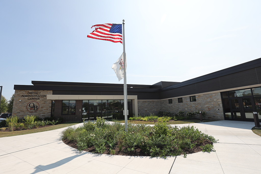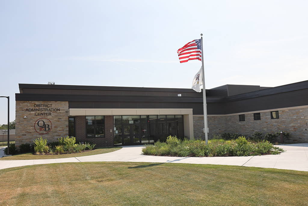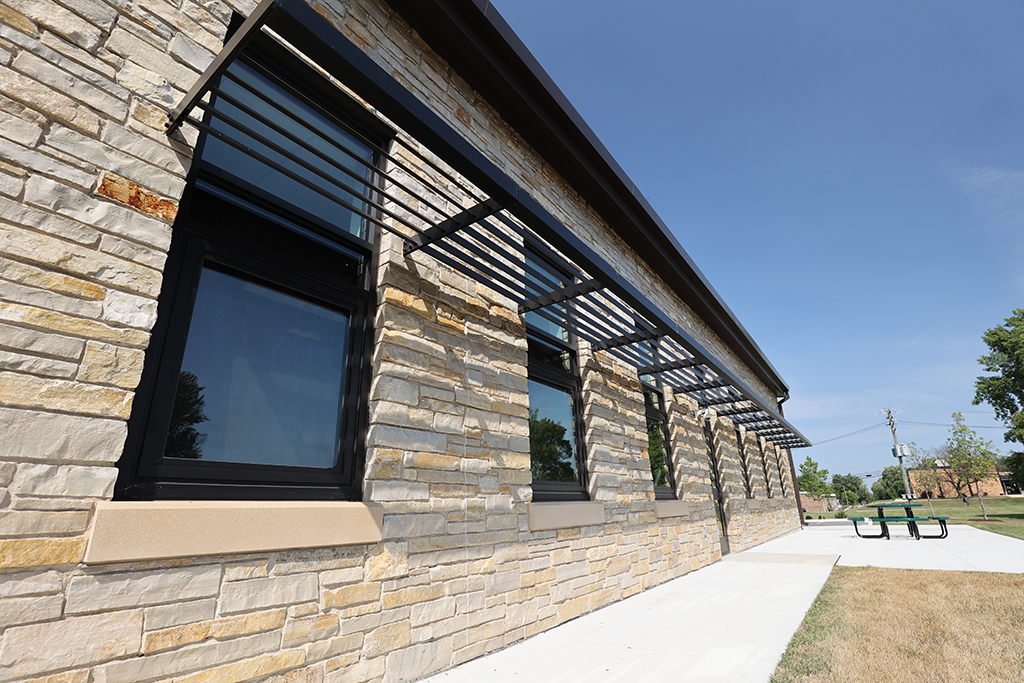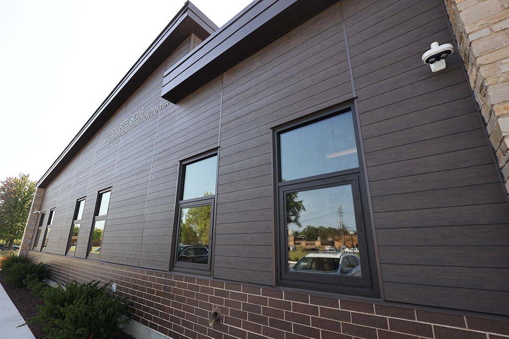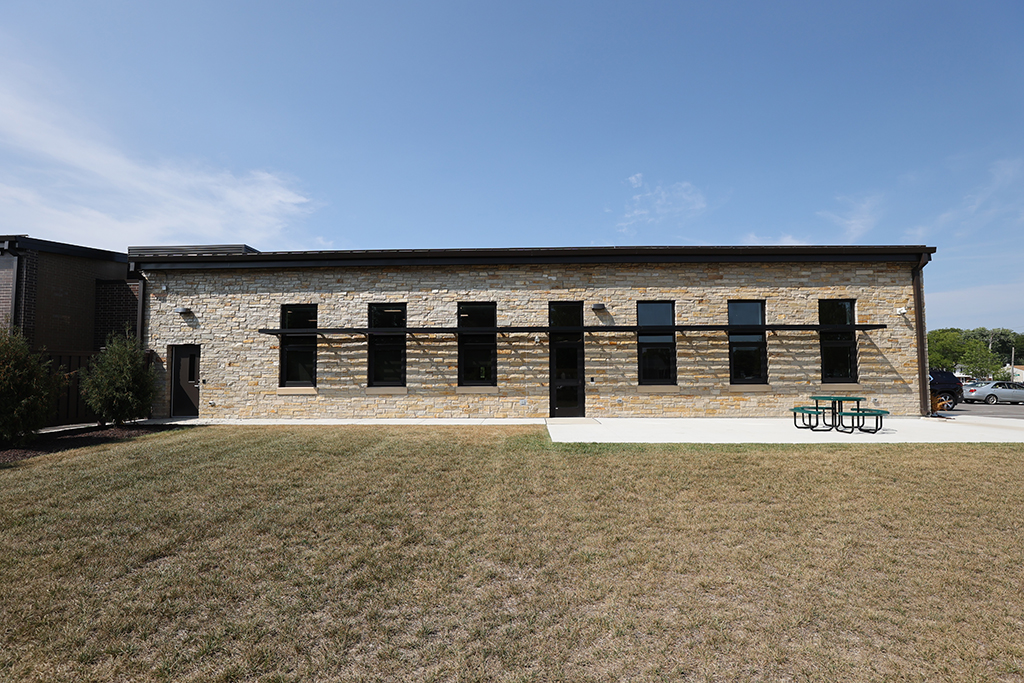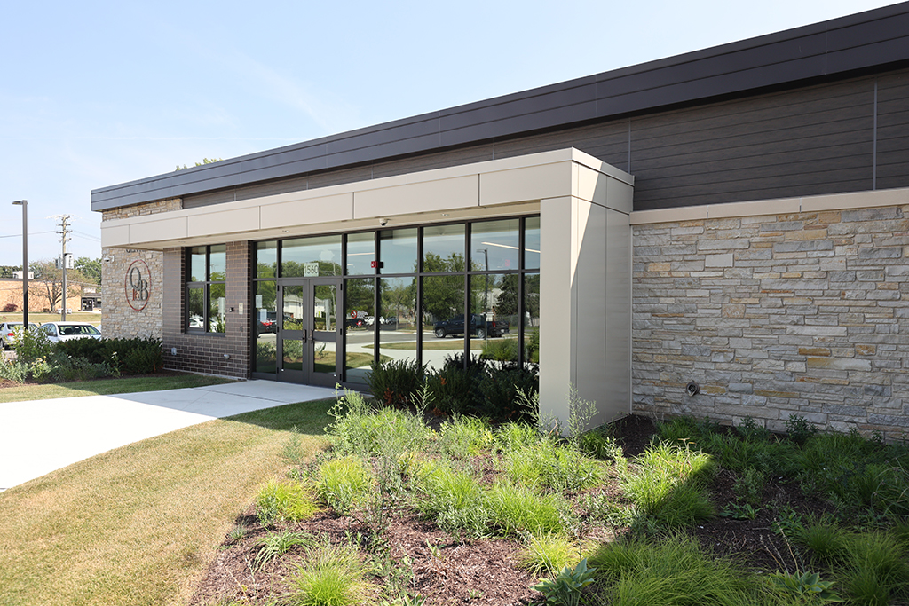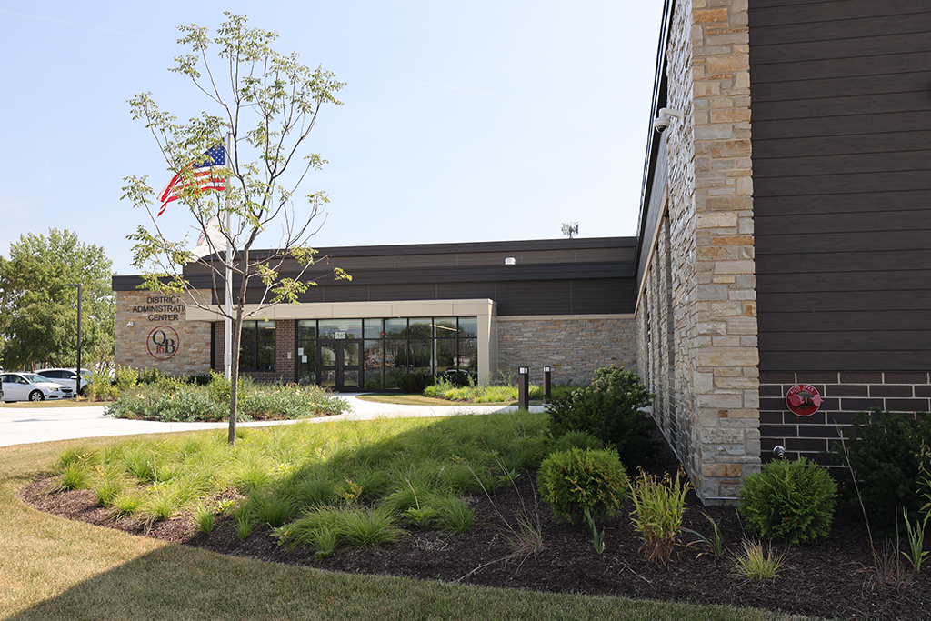 This new Administration and Maintenance building for School District 16 Queen Bee in Glendale Heights features a combination of Belden Sienna Blend & Tumbleweed Velour brick and stone veneer, along with interior CMU walls. Project Foreman: Steve Fejedelem.
